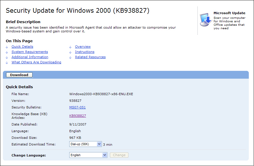 - In the Security Bulletin, the Affected Software table lists the software affected by this patch, and provides a link to the download page for that specific patch: