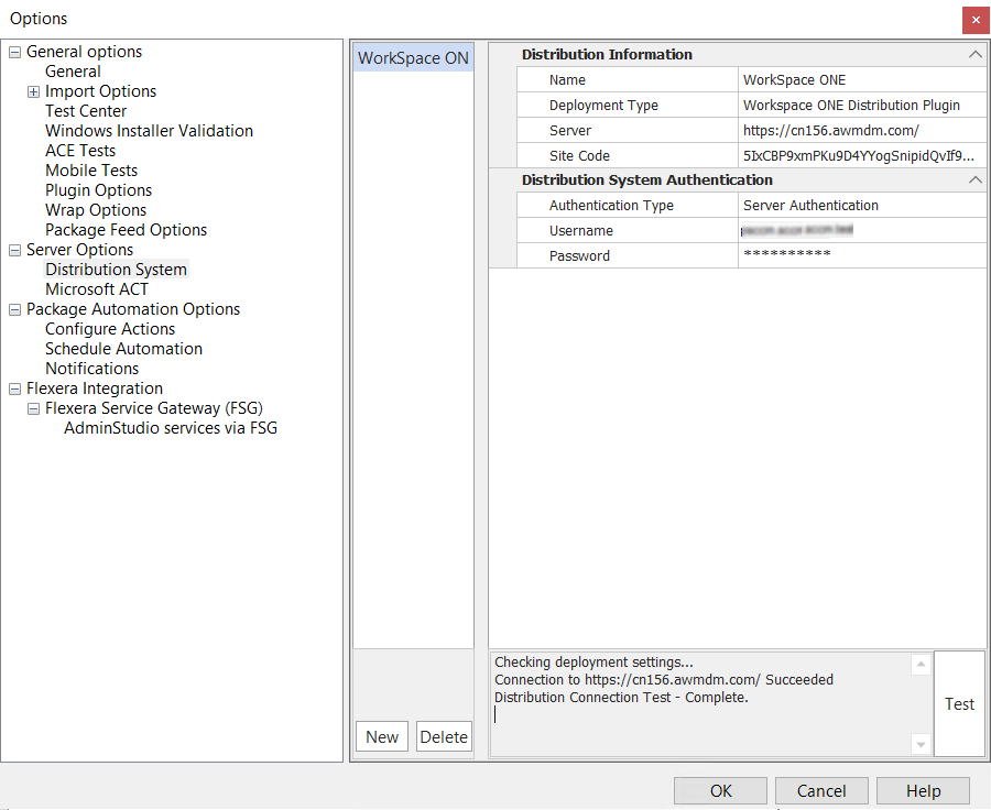 2. Under Servers Options, select Distribution System. The Distribution System tab opens, and lists all defined connections. ![](/images/Workspace ONE screenshot.png)