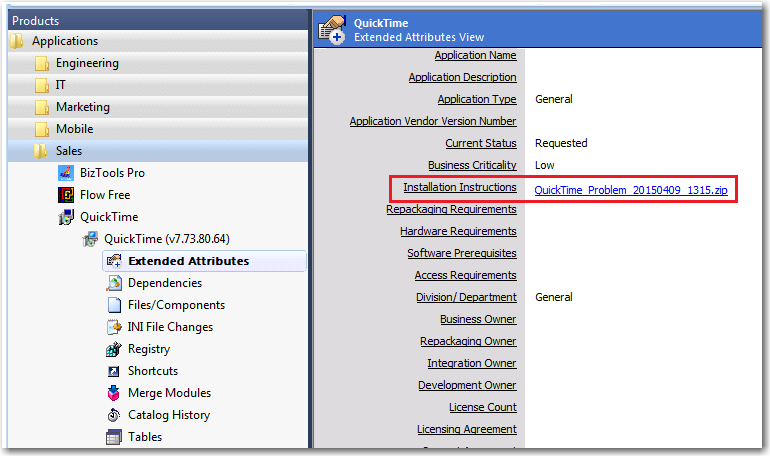 1. Review the information in the Additional Details area, which contains a text description of the steps that were taken, along with information that is internal to the repackaged application.