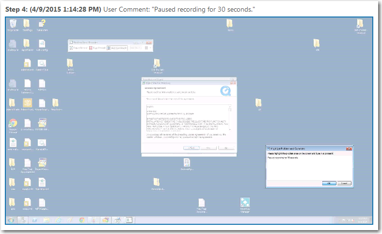 • If you entered any comments, they are listed in the file along with a screen capture of the Highlight Step and Commen t dialog box.